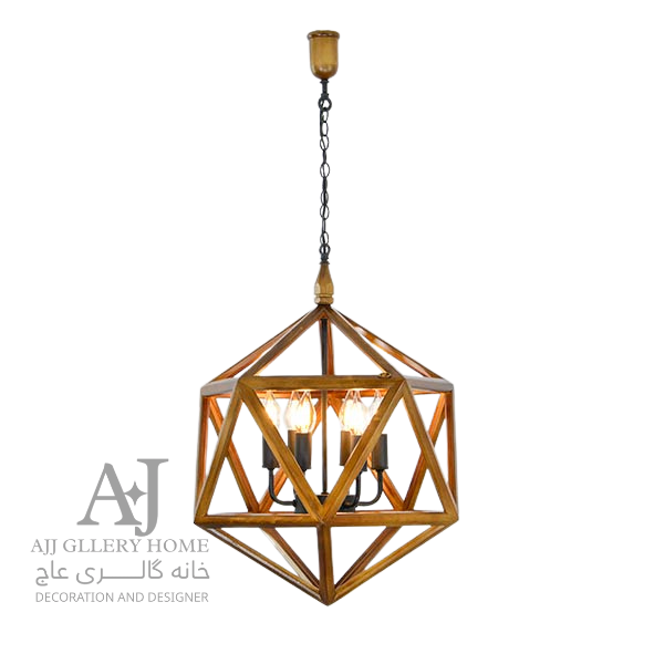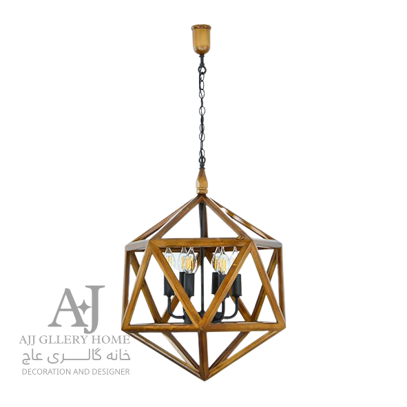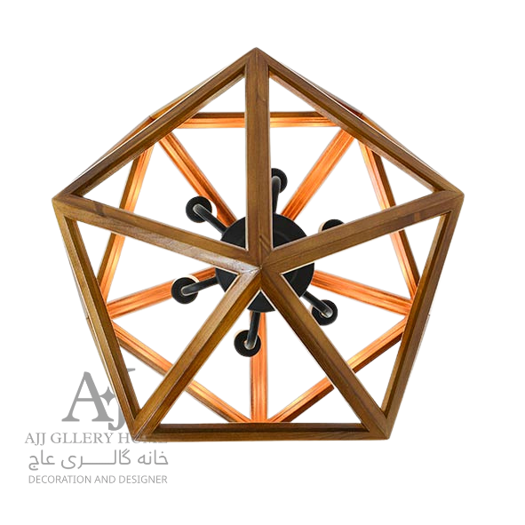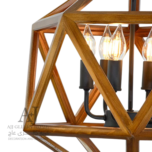 لوستر آویز مدرن چوبی 6 شعله خورشید دارکار - مشکی