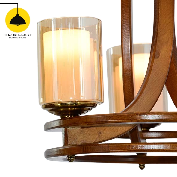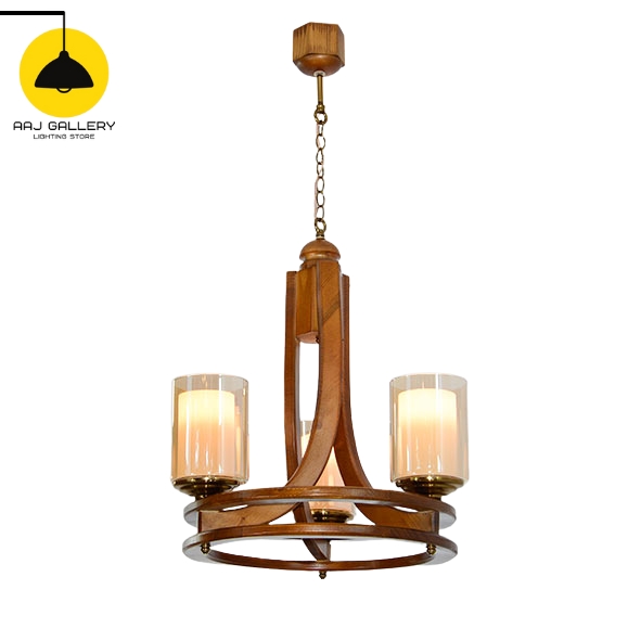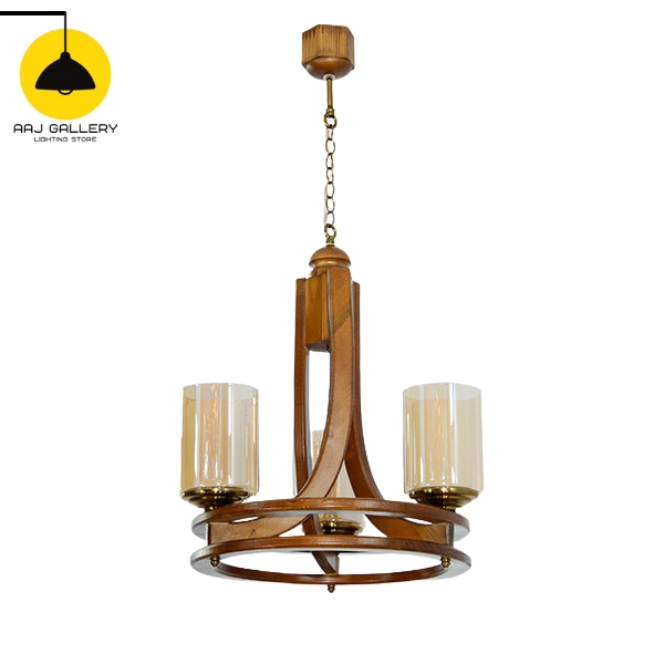 لوستر آویز چوبی سه شعله رولت دارکار - کد 240