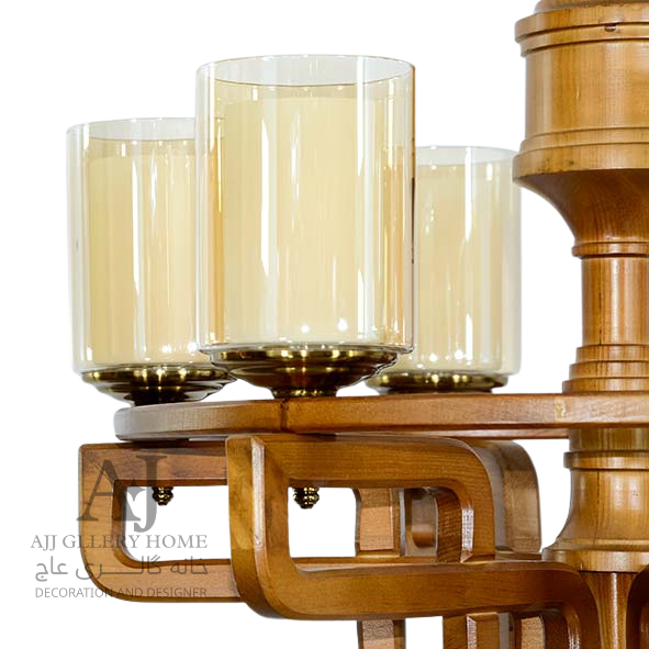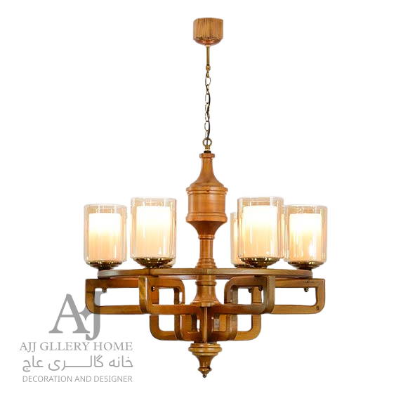 لوستر آویز چوبی ۶ شعله روژان دارکار
