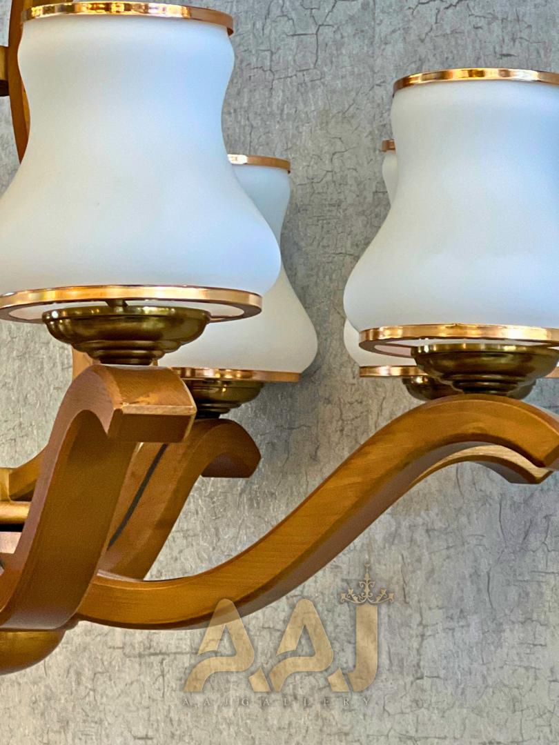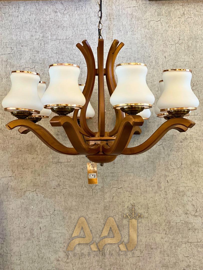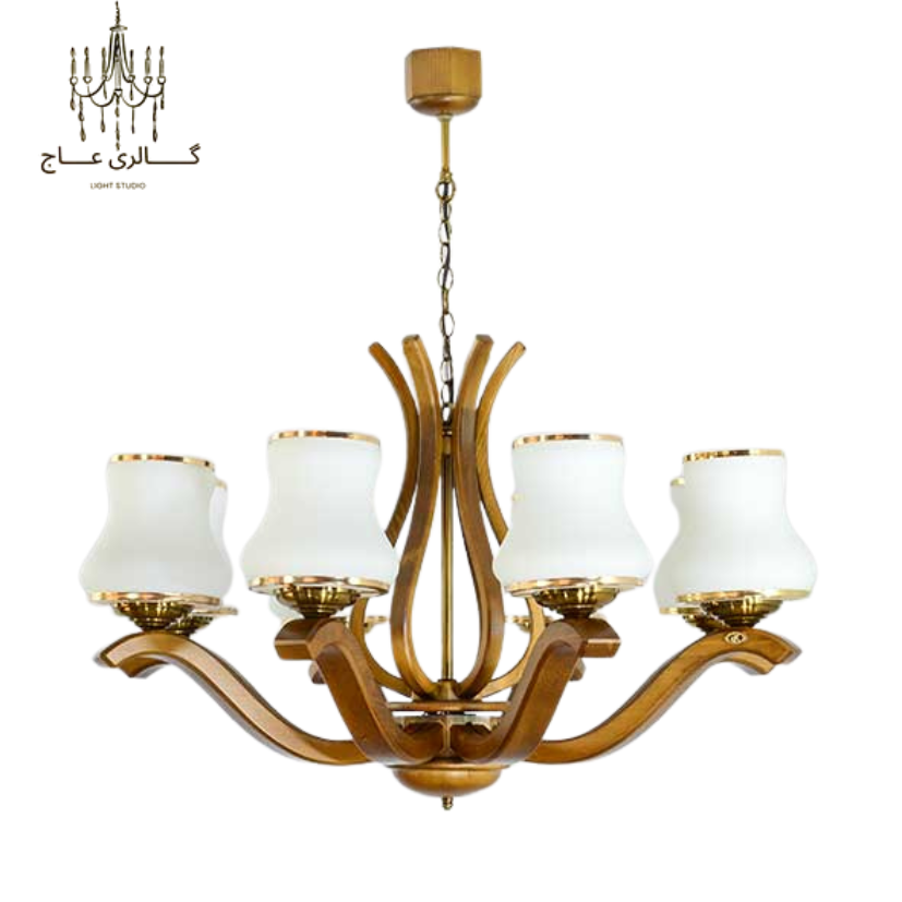 لوستر آویز چوبی 8 شعله هوران | تلفیق شکوه و نورپردازی حرفهای
