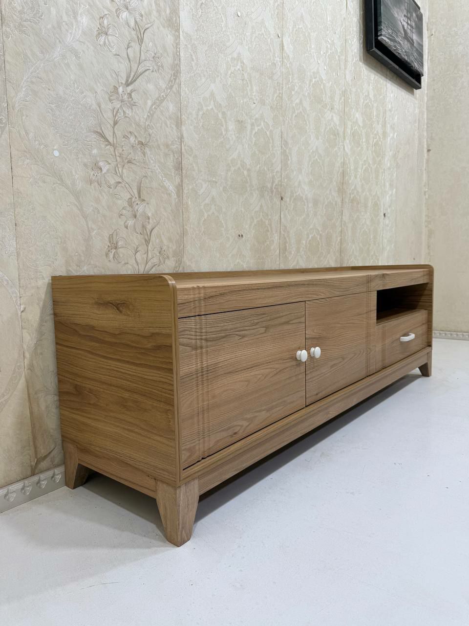این میز تلویزیون دارای چندین بخش در و کشو است و فضا را برای نظمدهی وسایل صوتیتصویری، کنسول بازی و لوازم جانبی فراهم میآورد؛ بنابراین علاوه بر زیبایی ظاهری، پاسخگوی نیازهای کاربردی خانواده نیز هست.