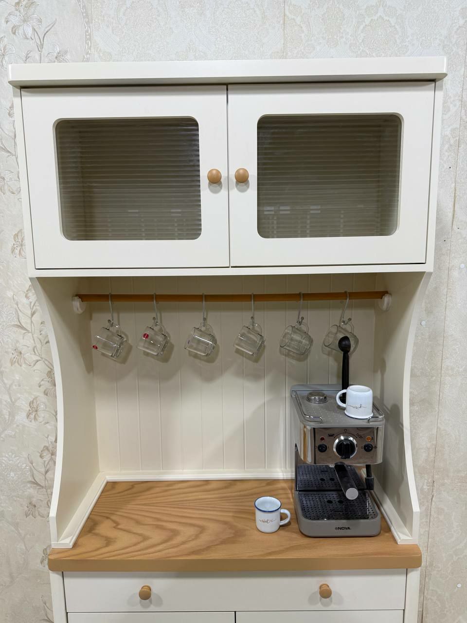 طراحی دو طبقه‌ی این محصول، فضای مناسبی برای دستگاه اسپرسوساز، فنجان، لیوان، اکسسوری دکوری و لوازم کافی‌بار فراهم می‌کند.