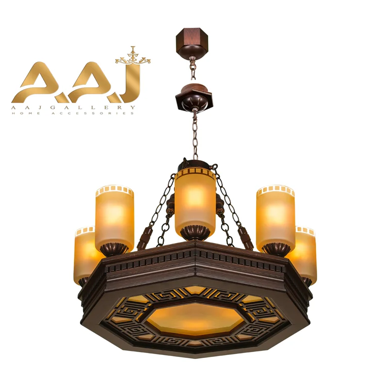 لوستر چوبی پرستیژ 13شعله که 5 شعله در کف لوستر و 8 شعله در حبابا های استوانه ای شکل خود دارد از مدل های جدید و خاص کارهای چوبی است که از نظر شکل بدنه و طراحی شاخه ها کاملا متفاوت نسبت به دیگر کارهای چوبی می باشد و دلیل این تفاوت طراحی خاص و خلاقانه بدنه و شاخه ها و برش های ظریف و فوق العاده تمیز و دقیق لوستر به وسیله دستگاه سی ان سی لیزری میباشد که شکل و شمایل جدید و منحصر به فردی به کار بخشیده است.جنس چوب این محصول از چوب درجه یک روس بوده و حباب های آن از سری حباب های جدید و انحصاری است که کرم رنگ بوده و نور را کاملا از خود عبور می دهد.که برای ست شدن محیط هایی مانند آشپزخانه و اتاق خواب ها میتوان از آنها در کنار لوستر بهره برد.