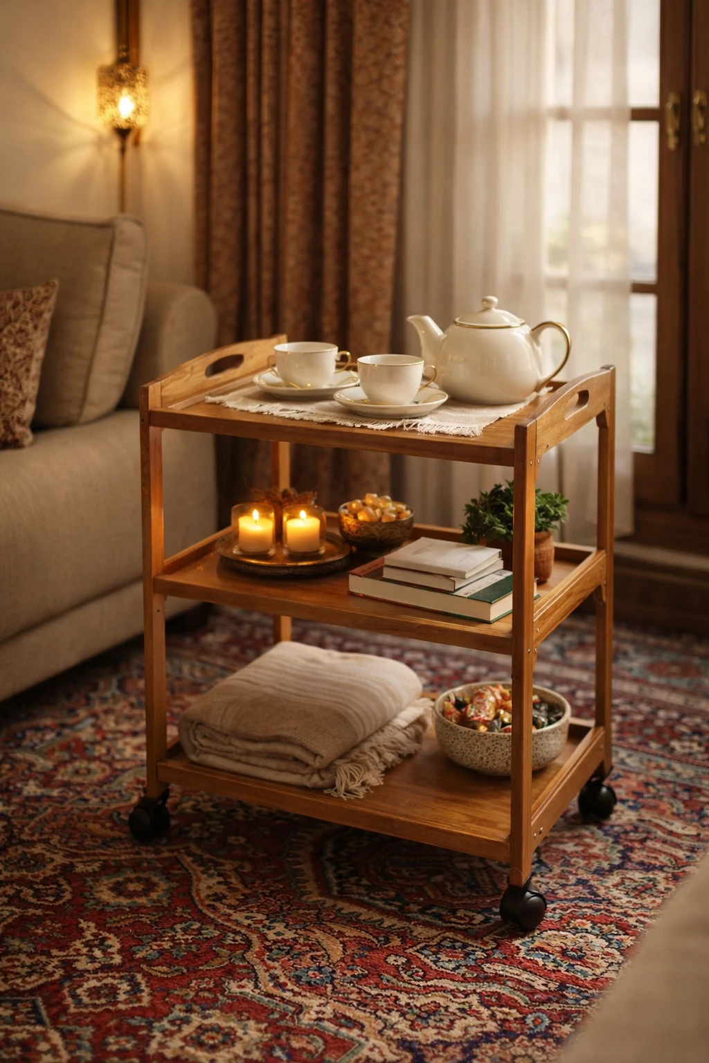 این میز ترولی مناسب پذیرایی بزرگه جهت پذیرایی از مهمون ها من پارسال خریدم کیفیتشم شرکتی و راضی هستم از خریدم