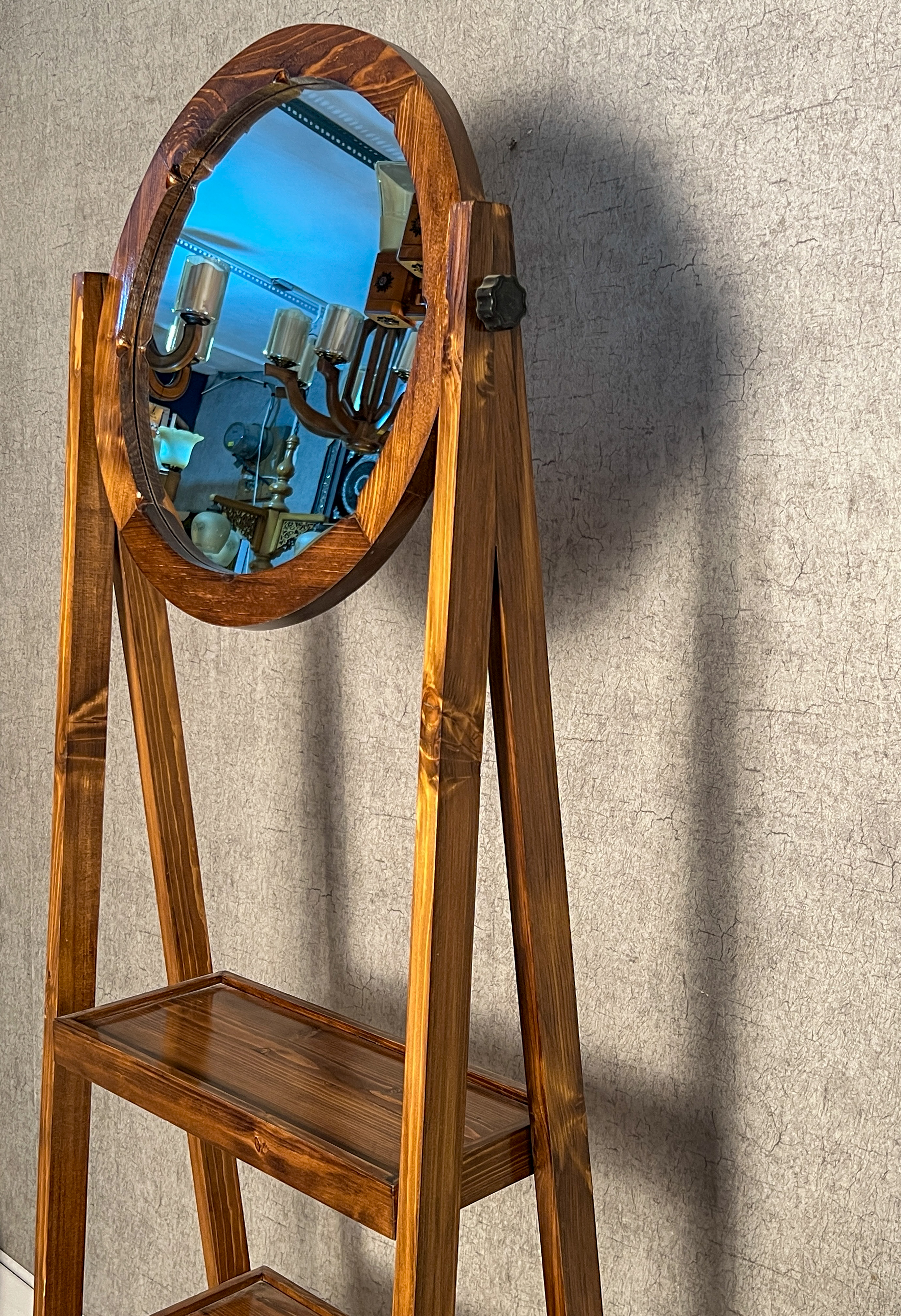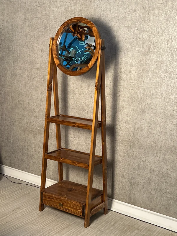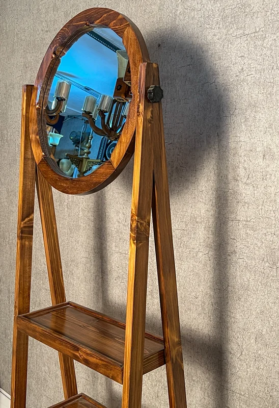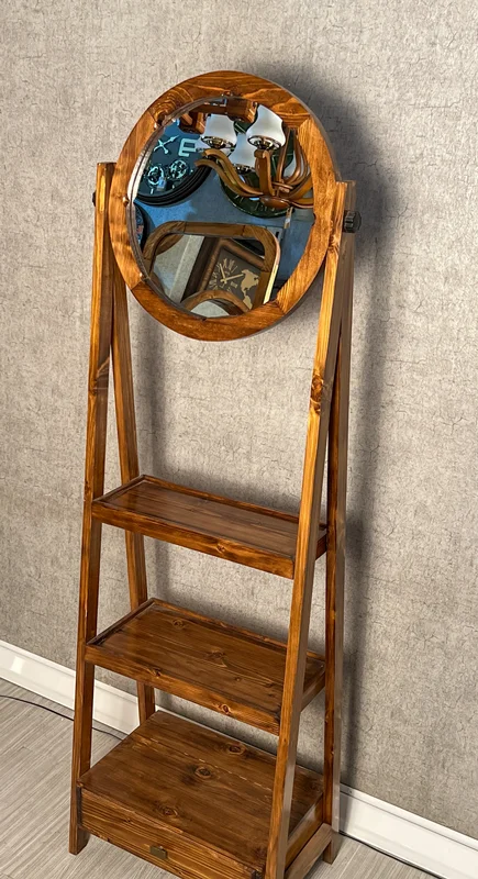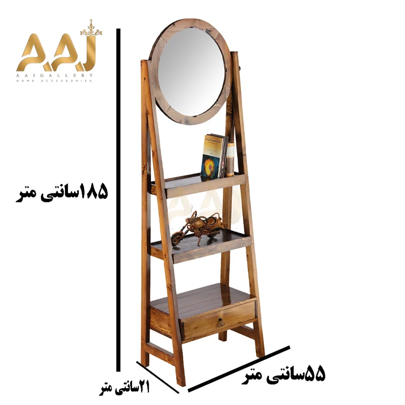 - دارای سه طبقه باز در کناره یا پایین آینه (بسته به طراحی دقیق)، مناسب برای قرار دادن وسایل دکوری، عطر، کتاب یا اکسسوری.