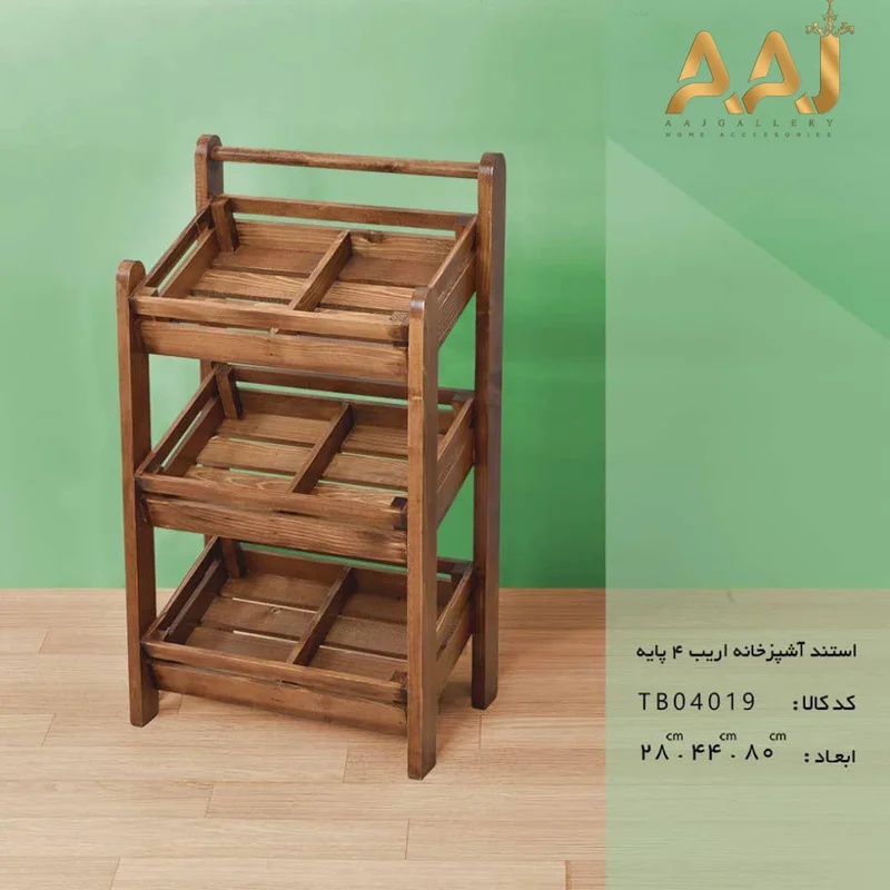 از استند آشپزخانه معمولاً جهت نگهداری ملزومات آشپزخانه و یا صیفی جات ( چغندر شلغم ، پیاز و سیب زمینی ) و غیره استفاده میشود. البته نحوه استفاده و قرارگیری آنها با توجه به نیاز و سلیقه مصرفکنندگان متفاوت است. استند آشپزخانه چهار پایه/ TB04019 از جنس چوب طبیعی با کیفیت ساخت بالای شرکتی توسط برند تحت نمایندگی گالری عاج ASOUREEK می باشد و دارای بیمه حفظ سلامت کالا تا مقصد را دارا می باشد .