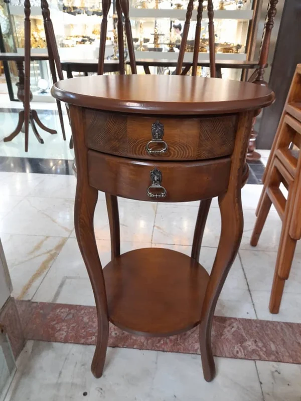 با «میز تلفن گرد دو کشو»، زیبایی و کارایی را به دکوراسیون منزل خود بیاورید. طراحی مدرن و شیک این میز، به همراه دو کشوی جادار، فضایی ایدهآل برای نگهداری وسایل ضروری تلفن شما ایجاد میکند. انتخابی هوشمندانه برای کسانی که به دنبال ترکیبی از سبک و عملکرد هستند. هماکنون خرید کنید و دکوراسیون خود را متحول کنید. نام میز گرامافون نشان می دهد که علاوه بر گرامافون رومیزی برای نمایش وسایل تزئینی نیز استفاده می شود. این میزها معمولاً از چوب مرغوب ساخته می شوند و به دلیل ابعاد گرامافون رومیزی سطح بیشتری نسبت به میزهای کنار تلفن و سالنی دارند.
