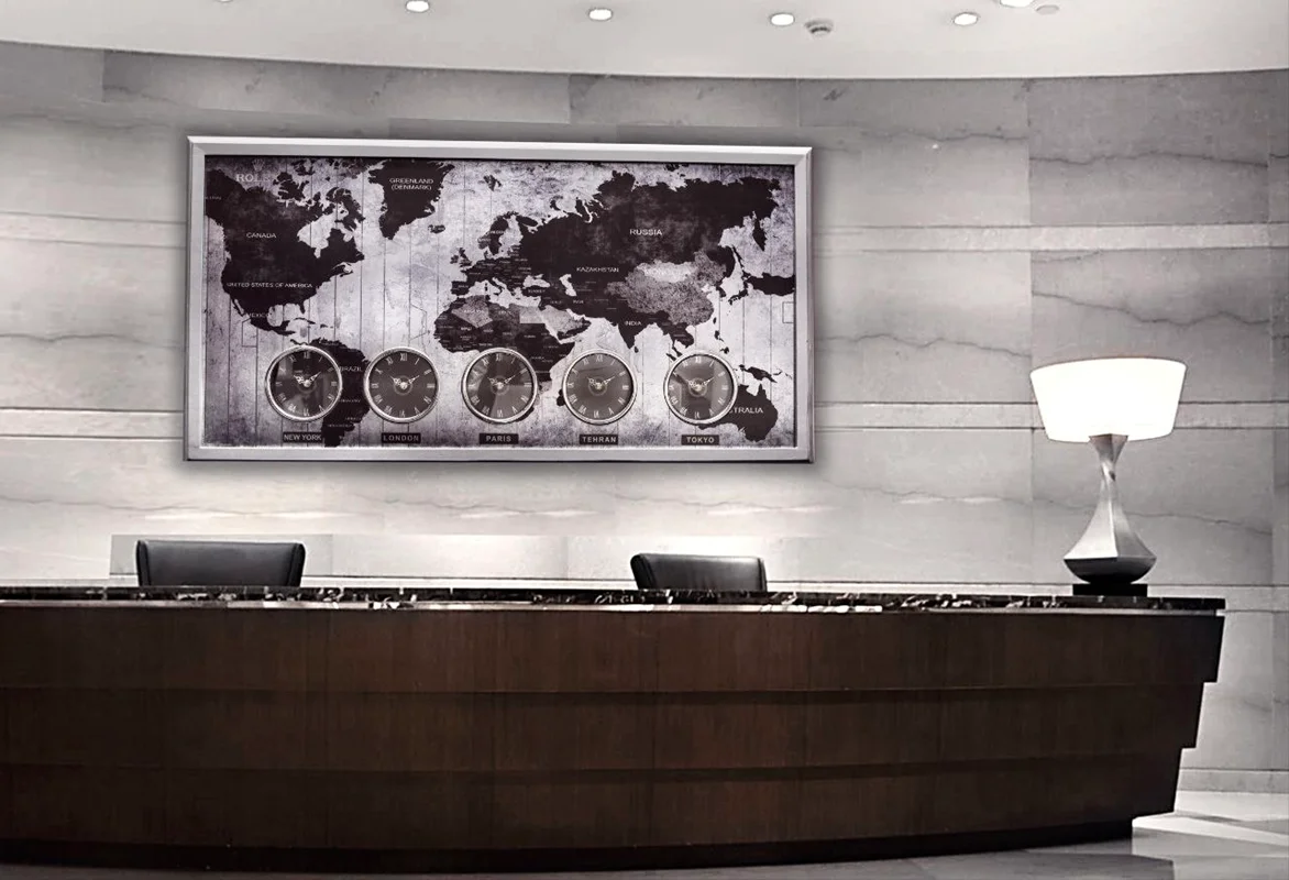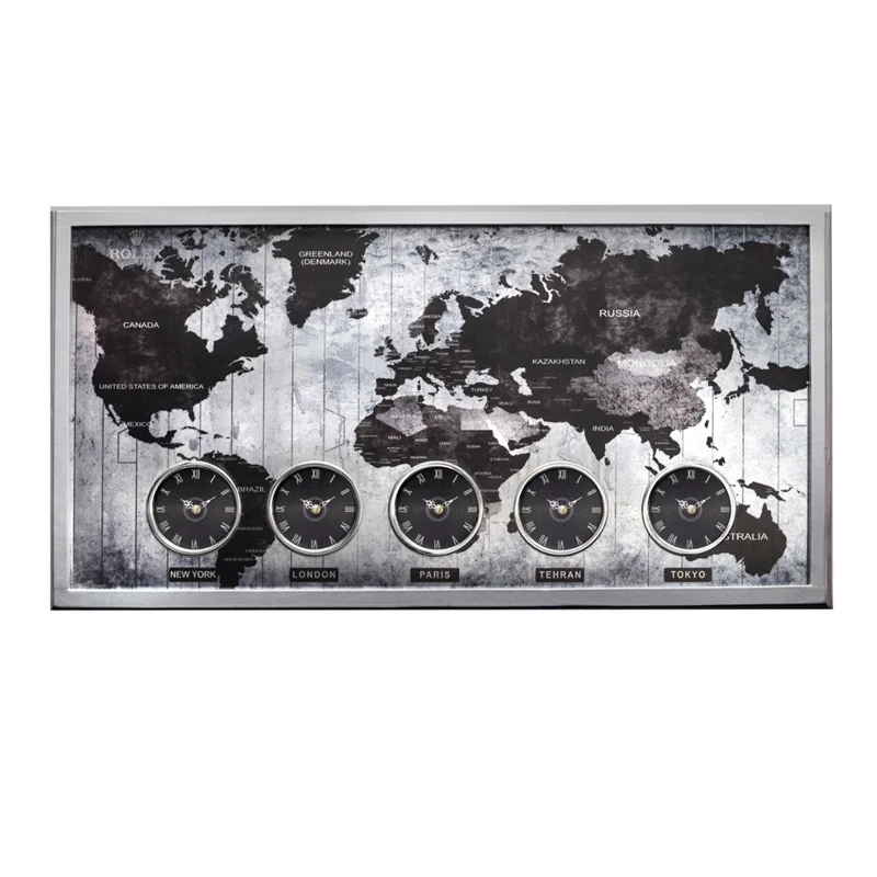 تابلو ساعت رولکس جهان نما کد 10سیلور از جنس تلفیقی چوب و PVC با 5 موتور تایوانی درجه یک و ضمانت 6 ساله شرکتی است . قاب ، صفحه ، اعداد و عقربه این محصول رنگ سیلور و پس زمینه رنگ تلفیقی سیلور و مشکی مات می باشد که به 5 زمان مختلف ( نیویورک ، لندن ، پاریس ، تهران ، توکیو ) قابلیت تنظیم دارد و جزو خاص ترین ساعت های دیواری کالکشن گالری عاج می باشد .