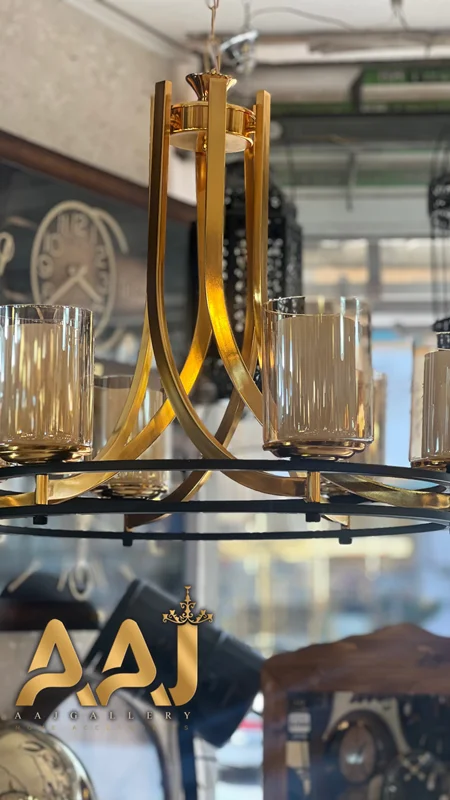 لوستر ۶ شعله تمام پروفیلی آبکاری طلایی با گلس وارداتی | ترکیب هنر و کیفیت در نورپردازی معرفی محصوللوستر ۶ شعله تمام پروفیلی با طراحی خاص و متریال لوکس، انتخابی بینظیر برای فضاهاییست که نیاز به نورپردازی دقیق، دکوراسیون مدرن و حس لوکس دارند. این مدل با ترکیب رنگ آبکاری طلایی براق، مشکی مات استاتیک ضدخش و حبابهای وارداتی دوجداره، گزینهای متمایز در بین لوسترهای حرفهای است.