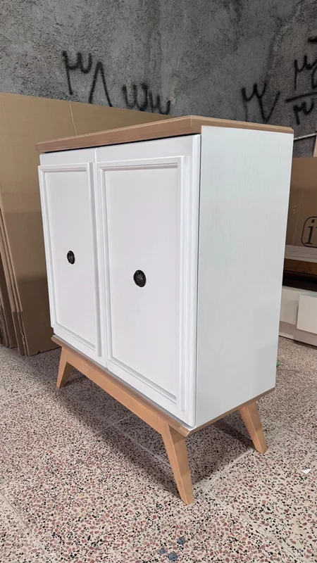 صفحه رویی با رنگ عسلی گرم حس طبیعی چوب را به خوبی منتقل میکند و در ترکیب با رنگ سفید صدفی بدنه و دربها، جلوهای مینیمال، تمیز و دلنشین ایجاد میکند. این ترکیب رنگی همزمان با دکوراسیون کلاسیک و مدرن قابل هماهنگسازی است.