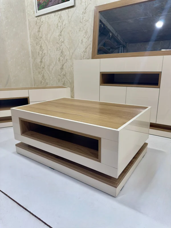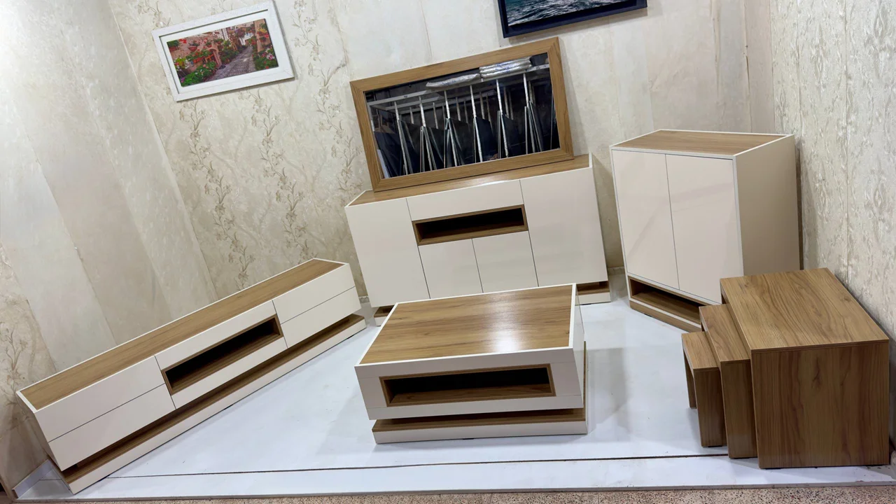 این ست کامل با ترکیب ظاهری زیبا و کیفیتی ماندگار، فضای خانه شما را به محیطی گرم، مدرن و لوکس تبدیل میکند. از میز تلویزیون کاربردی گرفته تا کنسول و آینهی شیک، همه اجزا با ظرافت طراحی شدهاند تا نیازهای یک دکوراسیون کامل را برآورده کنند.