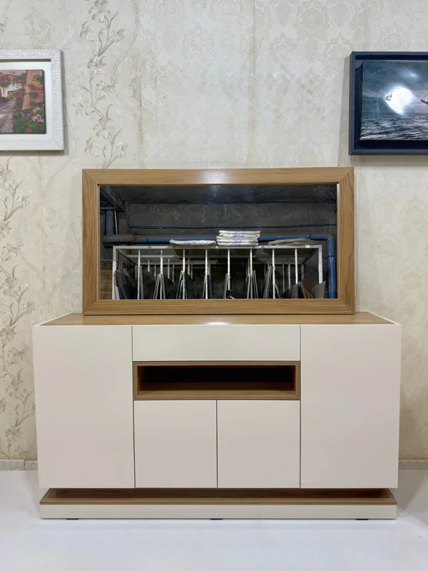 ✔️ ساختهشده از MDF هایگلس ضدخش و ضدلک با جلوهای براق و لوکس