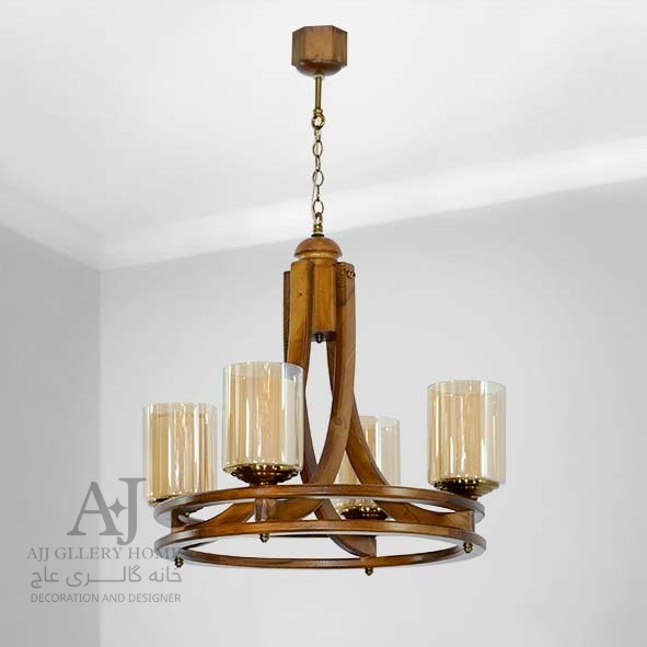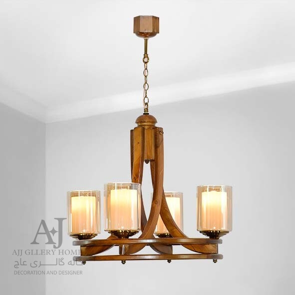 این لوستر چوبی چهار شعله، گزینهای ایدهآل برای نورپردازی و تزئین فضاهای مختلف از جمله: