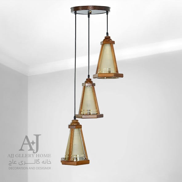 لوستر آویز 3 شعله چوبی هانا دارکار